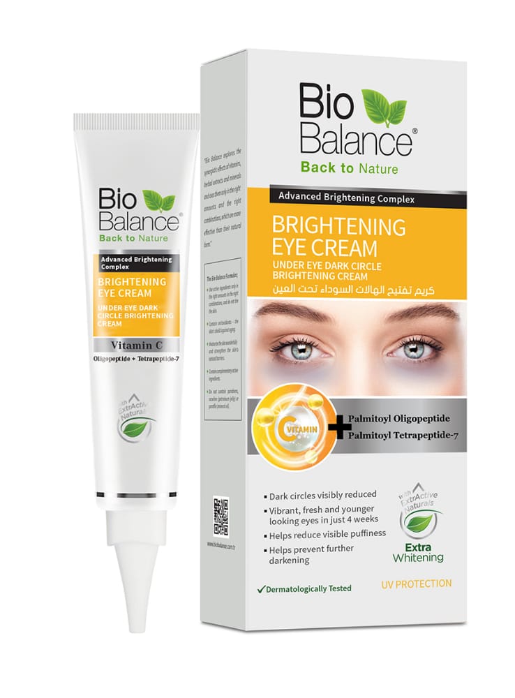 BioBalance Brightening Eye Cream is specially formulated to reduce appearance of serious dark circles and visible puffiness around eye area. Unlike ordinary eye creams, the unique BioBalance formula combines, a revolutionary matrikine peptide complex which helps by eliminating peri-orbitol discoloration by breaking down and clearing away degraded red blood cells and strengthens the skin density over the area and a blend of natural vitamins, moisturizers and skin brighteners to help nurture and brighten this delicate area.